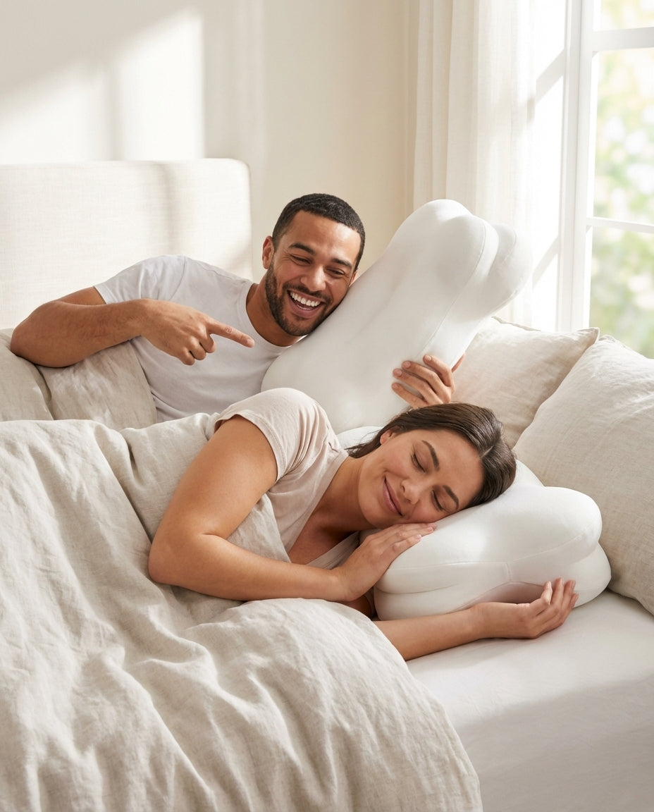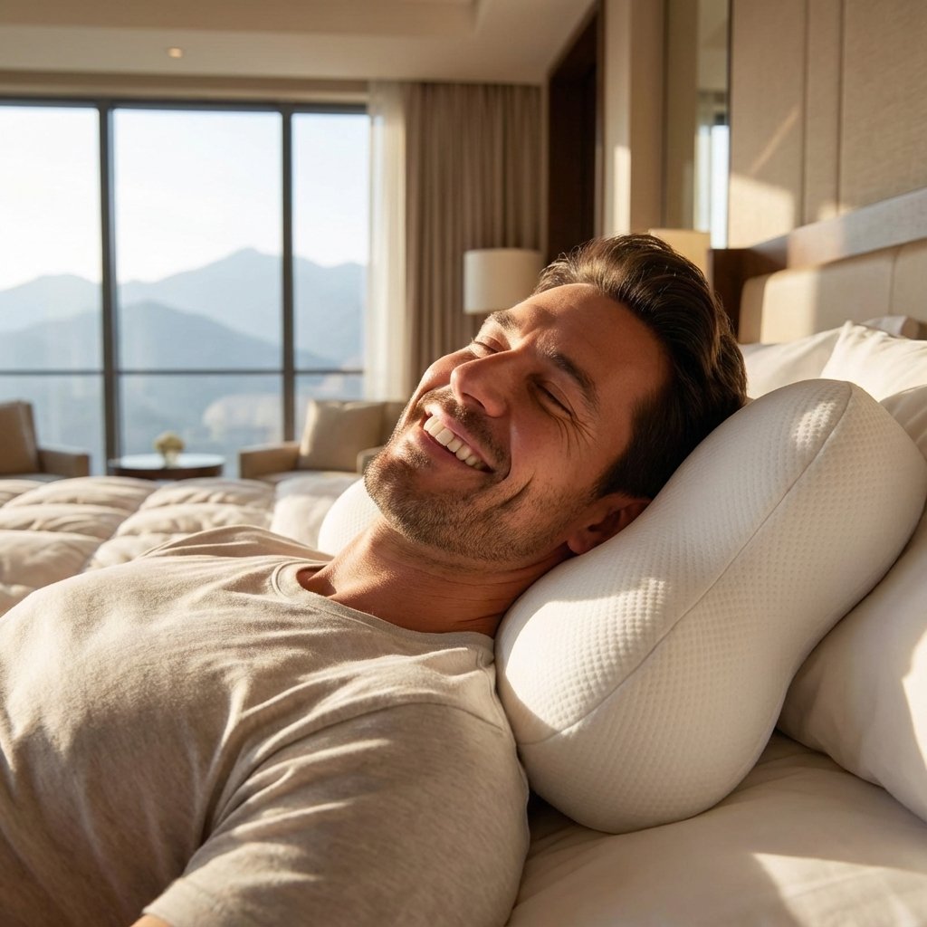 "LuxeCloud gently supports my neck and keeps my head perfectly aligned, making it easier to relax and drift off quickly. I sleep deeper and wake up refreshed."